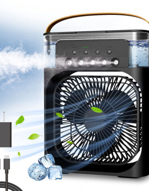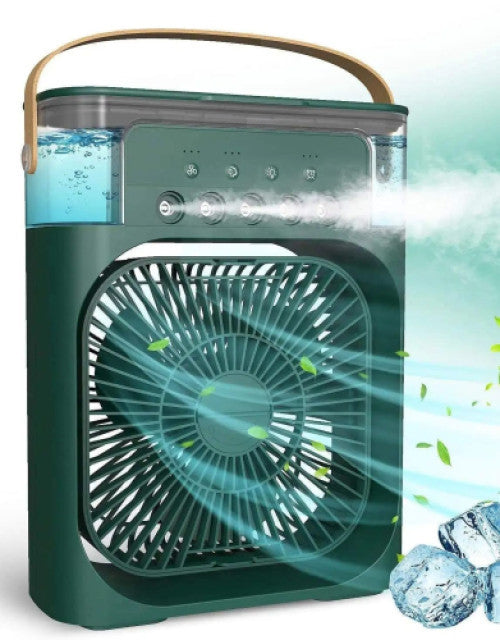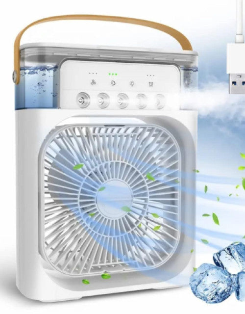 Acts as a mini air cooler, humidifier, and mist fan to provide a cool and comfortable environment.