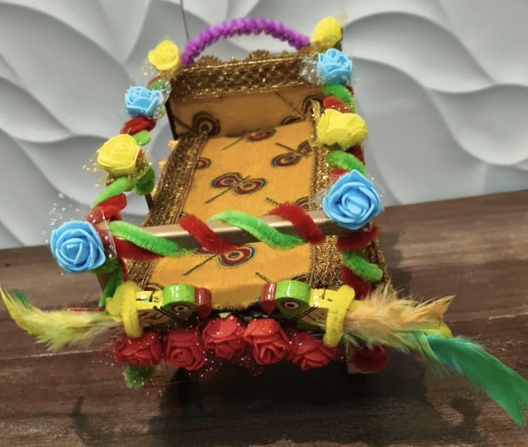 Celebrate Janmashtami with this beautifully crafted Shri Krishna Jhoola made from durable metal. Weighing approximately 500 grams, it offers a perfect size and sturdy build for your festive decor. Please note, the idol is not included. Enhance your celebrations with this elegant Jhoola.